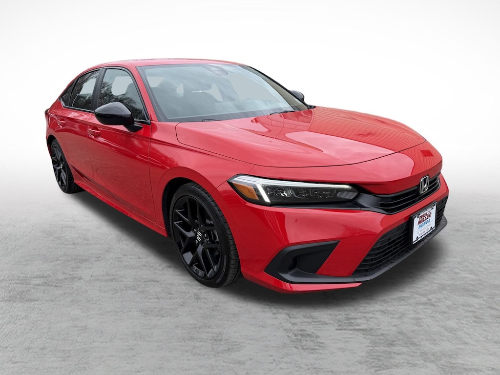 Certified. Rallye Red 2023 Honda Civic Sport FWD CVT 2.0L I4 DOHC 16V i-VTEC ***Carfax One Owner***, ***Recent Oil Change***, ***Passed Dealership Inspection***, Black w/Cloth Seat Trim, 4-Wheel Disc Brakes, 8 Speakers, ABS brakes, Adaptive Cruise Control: Adaptive Cruise Control (ACC) with Low-Speed Follow, Air Conditioning, Alloy wheels, Apple CarPlay/Android Auto, Auto High-beam Headlights, Automatic temperature control, Brake assist, Dual front impact airbags, Dual front side impact airbags, Electronic Stability Control, Emergency communication system: HondaLink, Exterior Parking Camera Rear, Four wheel independent suspension, Front anti-roll bar, Front Bucket Seats, Fully automatic headlights, Knee airbag, Low tire pressure warning, Occupant sensing airbag, Overhead airbag, Power steering, Power windows, Radio data system, Radio: 180-Watt Audio System w/8 Speakers, Rear anti-roll bar, Rear side impact airbag, Rear window defroster, Remote keyless entry, Security system, Speed control, Speed-sensing steering, Steering wheel mounted audio controls, Traction control, Wheels: 18" Gloss Black Alloy.